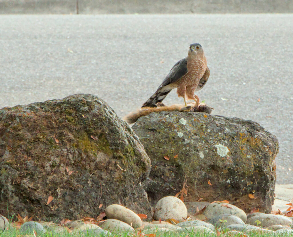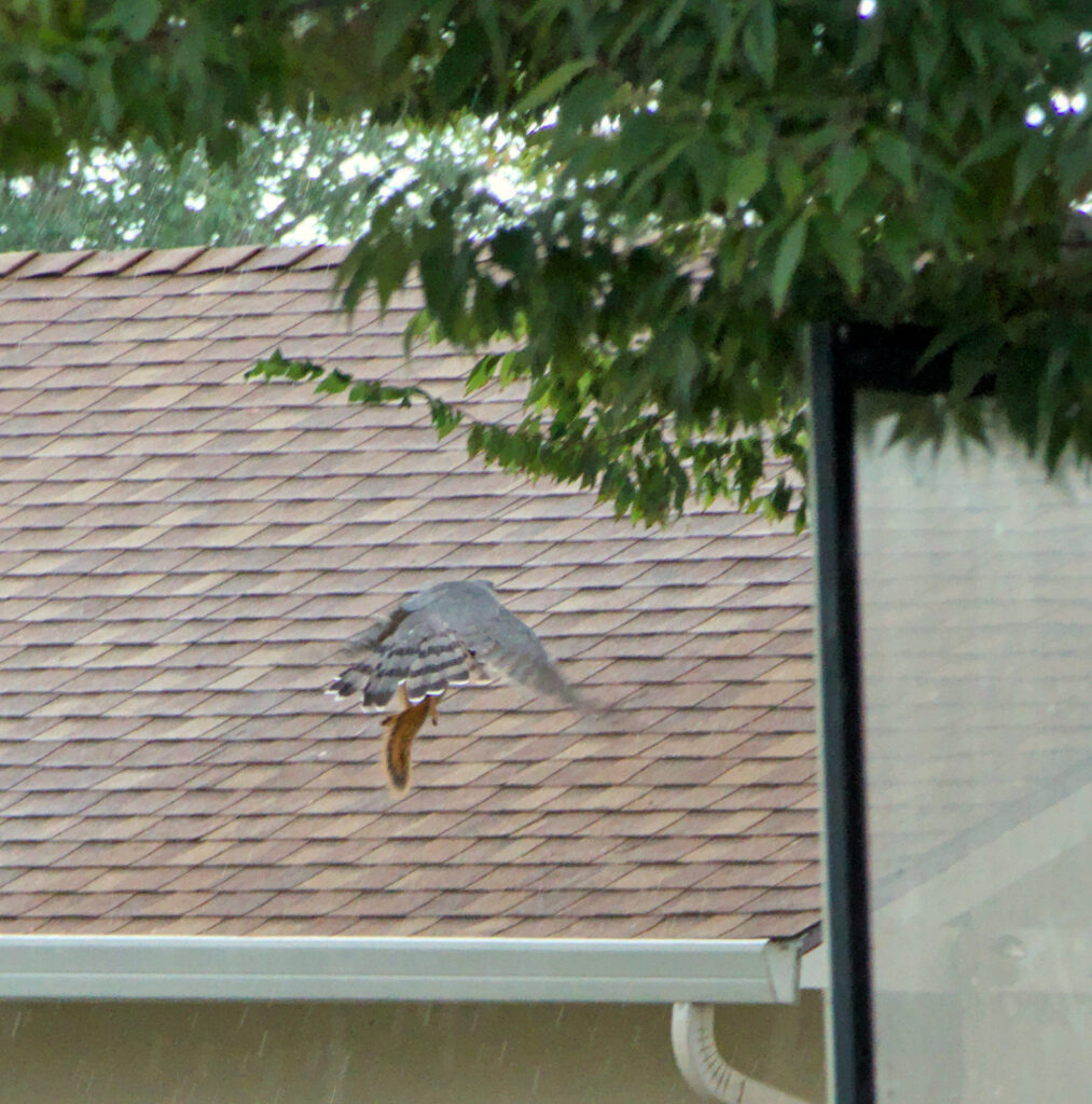 What appears to me to be a Cooper’s Hawk seems to have taken up our neighborhood as a hunting ground.