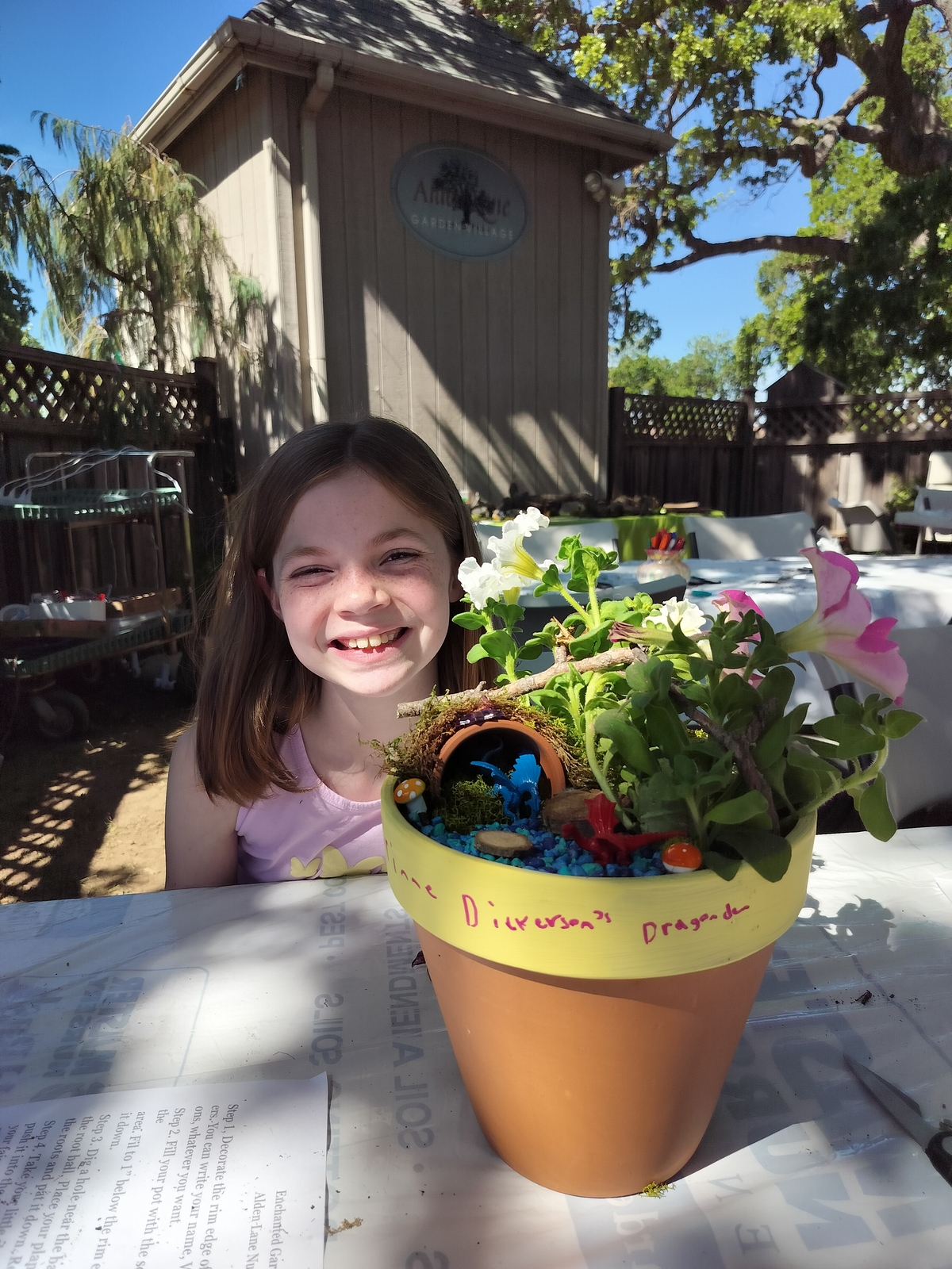 Dragon Dens March 22, 2026 8:43 pm Alden Lane Nursery had a crafting event to create a fairy garden or dragon den. The girls both opted for dragon dens. They had fun. The dragon dens live along the sidewalk up to the house now.